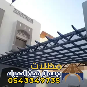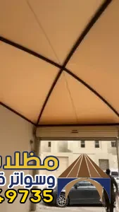 - مظلات السيارات: يتم تصميمها بأشكال (كابولي، إكس، ومخروطي) باستخدام قماش الـ PVC الكوري أو الألماني عالي الكثافة.
