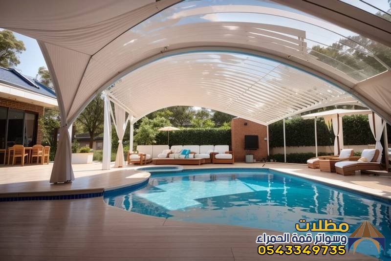- مظلات الـ PVC (ألمانية وكورية): هي الخيار رقم واحد عالمياً؛ لسهولة تنظيفها، مقاومتها للحرائق، وقدرتها الفائقة على عزل الحرارة بنسبة تصل إلى 100%.
